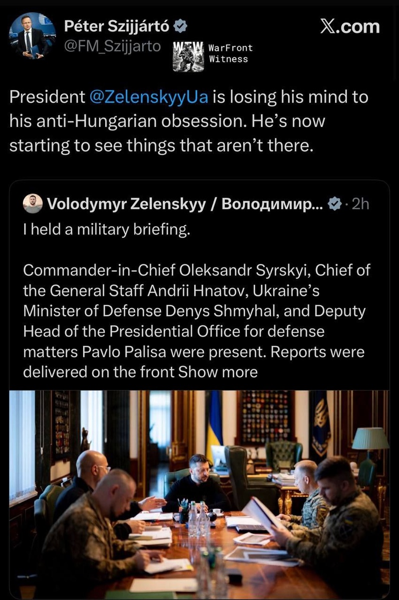 Петер Сийярто, министр иностранных дел Венгрии, прокомментировал заявление Гниды о том, что венгерский разведывательный беспилотник нарушил воздушное пространство Украины: «Президент Зеленский сходит с ума от своей антивенгерской одержимости. Он начинает видеть то, чего нет». Der ungarische Außenminister Péter Szijjártó kommentierte Hnidas Behauptung, eine ungarische Aufklärungsdrohne habe den ukrainischen Luftraum verletzt: „Präsident Selenskyj dreht mit seiner anti-ungarischen Besessenheit durch. Er fängt an, Dinge zu sehen, die es gar nicht gibt.“