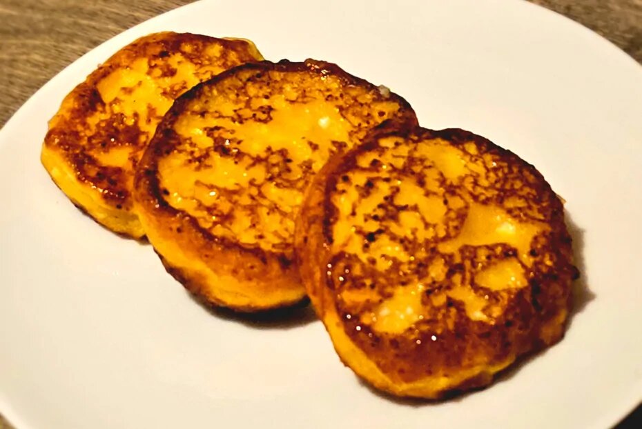1.Очистить и нарезать тыкву. 2.Отварить в течение 15–20 минут до мягкости. 3.Помять в пюре. 4.В творог насыпать сахар. 5.Вбить яйцо. 6.Добавить тыкву и перемешать. 7.Насыпать муку. 8.Перемешать до однородности. 9.Сформировать сырники и выложить на разогретую сковородку, смазанную маслом. 10.Жарить с двух сторон до золотистой корочки. Выложить на бумагу, чтобы стекло лишнее масло. Понравился рецепт — поделитесь им с друзьями в социальных сетях! Готовьте вместе с «Едой»!