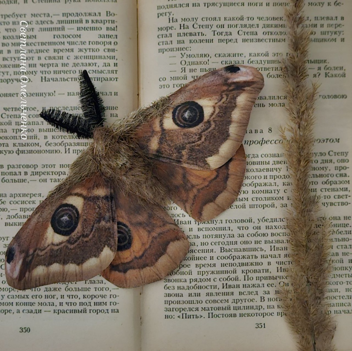 Брошь мотылек. Большой . Размах крыльев 16см. Холодный фарфор. 4500р