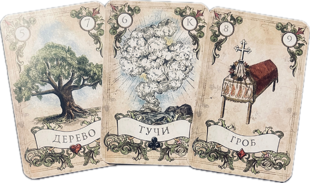 Значение для отношений: Триплет показывает не состояние отношений, а восприятие отношений партнером, на которого делается расклад - тревожное, пессимистичное, усталое, требуется перезагрузка (гроб). В данный момент он не дает шанса оставить так, как было раньше, требуется новый виток или рывок, чтобы избавиться от накопленного напряжения (здесь может быть как усталость от негативных мыслей связанных с тревогами и подозрениями, так и раздражение партнером или обстоятельствами, влияющими на ход событий). Вероятно, что под видимостью стабильности и уверенности (дерево) кроется что-то темное и мрачное, скрываемое от партнера, и тот, на кого делают расклад, уже выстроил траекторию, по которой трещина приведет к разрыву. Тучи часто показывают внешнее негативное влияние, с большой вероятностью можно утверждать, что человек не возьмет на себя ответственность за разрыв или отдаление. Гроб в данном случае можно рассматривать так же как перезагрузку, но при нужно быть готовым к тому, что каждый