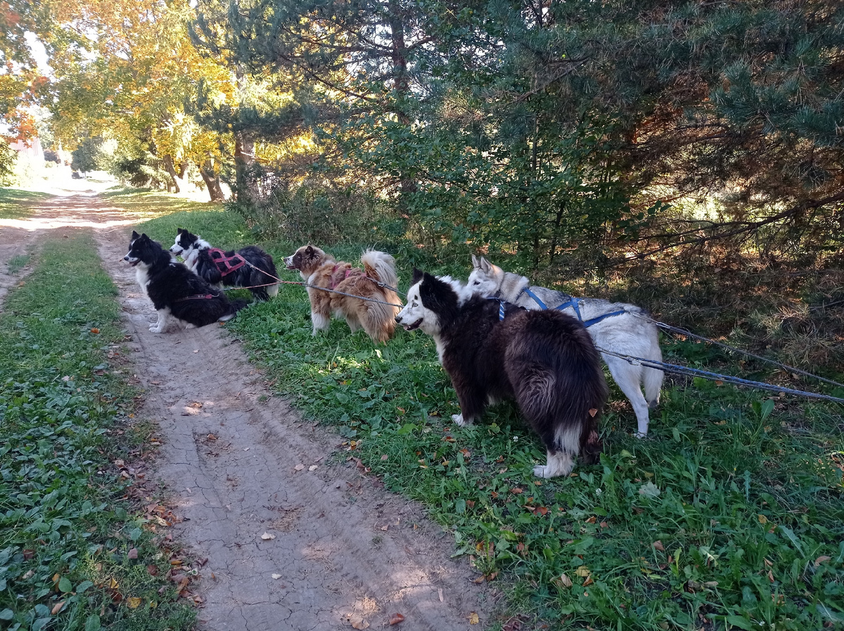 Пришлось еще раз останавливать всех, вытаскивать карт на дорогу и вновь идти рядом с Кексом и Банти, физически контролируя собак за шлейку, чтобы пройти мимо куриц, совершающих свой дневной променад.