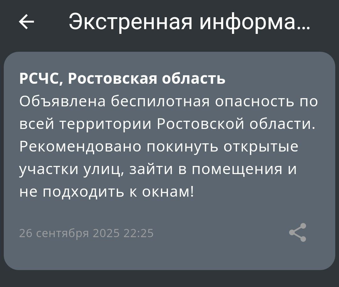 ‼️ В Ростовской области объявлена беспилотная опасность