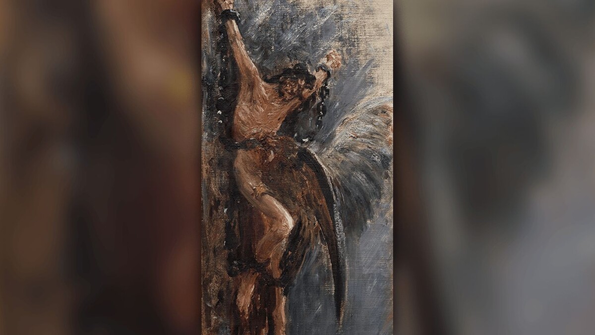Илья Репин. "Прометей". К древнегреческому мифу о Прометее, который подарил людям огонь и за это был наказан Зевсом, Илья Репин впервые обратился в 1908 году. Художник наполнил классический сюжет новым контекстом: в рисунке сепией он соединил знаменитый миф и образы из поэмы "Кавказ" Тараса Шевченко, к юбилею которого и готовил картину. На деньги от продажи репинского рисунка и открыток с его изображением предполагалось создать памятник Шевченко. Владелец рисунка, писатель и краевед Алексей Мошин, писал Репину в 1910 году: "Мерещатся мне его глаза пытливые, когда-то горевшие отвагой и умом, - теперь широко раскрытые от муки и от леденящего душу отчаяния, - и его руки, скованные, конвульсивно сжатые в кулаки, ставшие бесполезными руки богатыря-страдальца… Не правда ли, Вы напишите его в большом масштабе для музея, чтобы его видели массы народа… Прежде я думал, что самое сильное произведение, вызывающее сочувствие к страдальцу и отвращение к насилию, - это ваша картина "Грозный и сын", а приобретя "Прометея", убеждён, что он… "Прометей" Ваш с гениальной яркостью напоминает о тех непрестанных, неизъяснимо ужасных муках, какие многих-многих терзают, и о цепях, сковывающих человечество, и зовёт нас на подвиг…". К теме древнегреческого мифа Репин вновь вернулся во второй половине 1910-х годов. Сохранились работы, повторяющие композицию первого рисунка, но дополненные изображением кавказских гор. Картина "Прометей" впервые появилась на выставке в Выборге в 1921 году, затем - на экспозиции в Хельсинки, а на выставке в Брно в 1932 году были представлены и живописное полотно, и графическая работа с тем же названием. В живописном эскизе из собрания Исторического музея Репин усилил драматический эффект, изменив позу распятого титана и подчеркнув её экспрессивной манерой: фактурные мазки формируют обнажённое исхудавшее тело Прометея, выделяя его на фоне тёмного загрунтованного холста, нетронутого кистью.