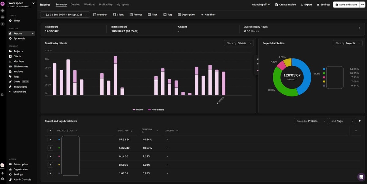 Логгирование умственной деятельности Сначала я пользовался приложением Forest. Но чтобы его использовать, нужен обязательно телефон, постоянно менять режим отслеживания... В общем, не очень удобно. Поэтому, я задался вопросом и в итоге пришел к Toggl Track. Весь сентябрь отслеживал, чем занимаюсь в течение дня, и опыт использования максимально положительный. А если учитывать за некую норму 4 часа в день фокусного времени, о чем можно услышать во многих местах, то среднее в 6 часов в день даже с учетом погрешностей выглядит довольно солидно. Плюсы Toggl против Forest? Работает в браузере и очень удобно запустить таймер на любую активность. Я поделил всю деятельность, отслеживать которую мне интересно, на 5 проектов, и подкатегории в виде тегов. Можно отслеживать сколько времени продолбано на рабочие созвоны, сколько времени потрачено на определенный проект. Вкладка отчетов нравится, чувствуется что кто-то думал про UX. Вообще, логгирование довольно увлекательный процесс. Позволяет ре