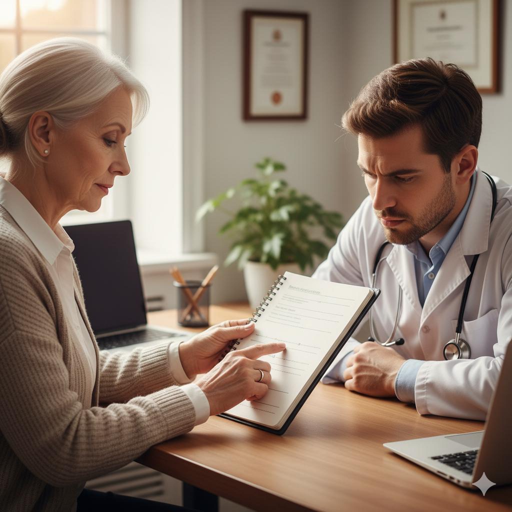 Через две недели я снова сидела перед тем же доктором. — Опять вы? — спросил он с плохо скрываемым раздражением. — Я же вам сказал, что это возрастное. Таблетки пьете? — Пью, — спокойно ответила я. — Но они не помогают. Доктор, я понимаю, что у вас мало времени, поэтому я подготовилась, чтобы его сэкономить. С этими словами я достала из сумки свой блокнот и положила его на стол. — Вот. Здесь мои симптомы за последние 14 дней. С точным временем, описанием и интенсивностью. Он посмотрел на меня с удивлением. Потом на мой раскрытый блокнот, исписанный аккуратным почерком. Он взял его в руки и начал читать. Я видела, как меняется выражение его лица. Усталая скука сменилась интересом, а потом — профессиональной сосредоточенностью. — Так, — сказал он, дочитав. — Головокружение в основном по утрам, при смене положения тела… А боль в суставах не связана с погодой… Интересно.