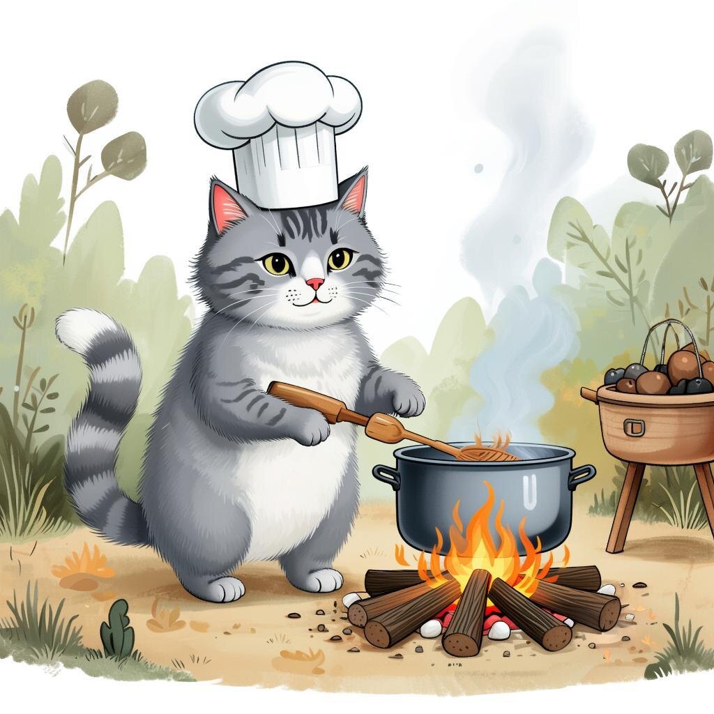 Приветствую вас, дорогие читатели! 🐱🌿 Сегодня я расскажу как Масик отправился в поход в джунгли и приготовил там вкусные блюда на костре. Присоединяйтесь к нам и откройте для себя прелести кулинарии на природе! Рецепт №1: Куриные шашлычки на костре Масик решил начать свое кулинарное приключение с приготовления куриных шашлычков. Это блюдо легко готовится и не требует особых навыков. Ингредиенты: Куриное филе — 200 г. Лук — 1 шт. Соль, перец — по вкусу. Оливковое масло — 1 ст.л. Приготовление: Калорийность: примерно 150 ккал на порцию. Рецепт №2: Салат из свежих овощей Свежие овощи — это идеальное дополнение к шашлычку. Масик приготовил салат из томатов, огурцов и листьев салата. Ингредиенты: Помидоры — 2 шт. Огурцы — 2 шт. Листья салата — 1 пучок. Оливковое масло — 1 ст.л. Лимонный сок — 1 ст.л. Приготовление: Калорийность: примерно 100 ккал на порцию. Рецепт №3: Печёная картошечка в фольге Картофель — это классика походной кухни. Масик решил запечь его в фольге, чтобы сохранить мак