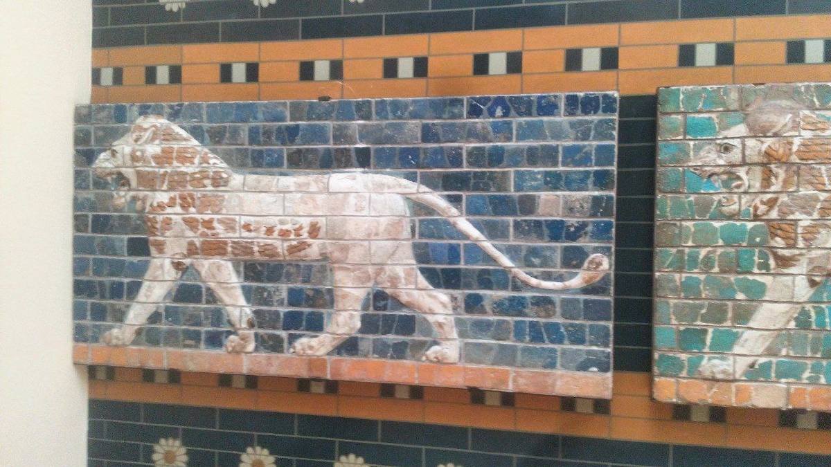 Рельефные изображения животных на глазурованной плитке в археологическом музее Стамбула до его реставрации. 2016