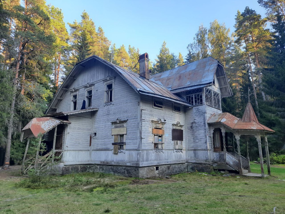 Заброшенными дореволюционными дачами где-нибудь в Сестрорецке или Комарово мало кого удивишь. Но наткнуться на деревянный особняк в глухих лесах Карельского перешейка (ровно посередине между Питером и Выборгом) лично я не ожидал 🤯 Это сейчас в нескольких километрах - недавно проложенная трасса Скандинавия, а ведь раньше здесь вообще ацкие дебри и болота были. Неприметный поворот на лесную грунтовку, сосновый лес с парочкой одиноко стоящих хуторов по дороге (да, именно отдельных домов, а не деревень) - и тут на тебе: богатая модерновая дача конца 19-го века на берегу озера: Израсцовые камины, декор, лепнина, чьи-то совсем недавно брошенные вещи… и вообще ничего вокруг, пустота! 👻 Я логично предположил, что это какой-то финский чиновник столетней давности отгрохал себе дом на фамильной земле своих ингерманладских предков. До Выборга 65км, до Петербурга 85км – кому ещё понадобится тут селиться, кроме издревле живших хуторами финнов? Видимо также «подумала» и яндекс-карта (на которой мы