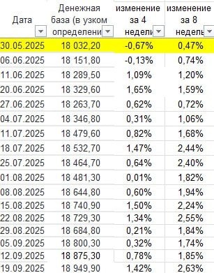 Нала всё больше: для борьбы с инфляцией и стабильного курса рубля, придётся до конца 2025г держать высокую ставку (чтобы копили, а не тратили) Денежная база в узком определении включает выпущенные в обращение Банком России наличные деньги (с учетом остатков средств в кассах кредитных организаций — резидентов РФ плюс остатки средств на счетах обязательных резервов, депонируемых кредитными организациями — резидентами РФ в Банке. Более 90% — это нал. Еженедельно по пятницам на сайте ЦБ свежие данные по узкой базе cbr.ru/hd_base/mb_nd/ Скачал, выложил график В сентябре рост по 0,4% в неделю За 4 месяца рост 5% ВЫВОД Для борьбы с инфляцией (чтобы не рос спрос), для поддержания рубля, ЦБ придётся в конце 25г держать высокую ставку Что в 26г? Думаем краткосрочно, Долгосрочное планирование не работает, много неопределённости Средняя длина теперь менее года Не теряю на развороте RGBI VIPчат https://t.me/OlegDTrading/3939 Промокод, скидка 25% Название WEEKEND, Код WEEKEND, До 28 09 25 г 19
