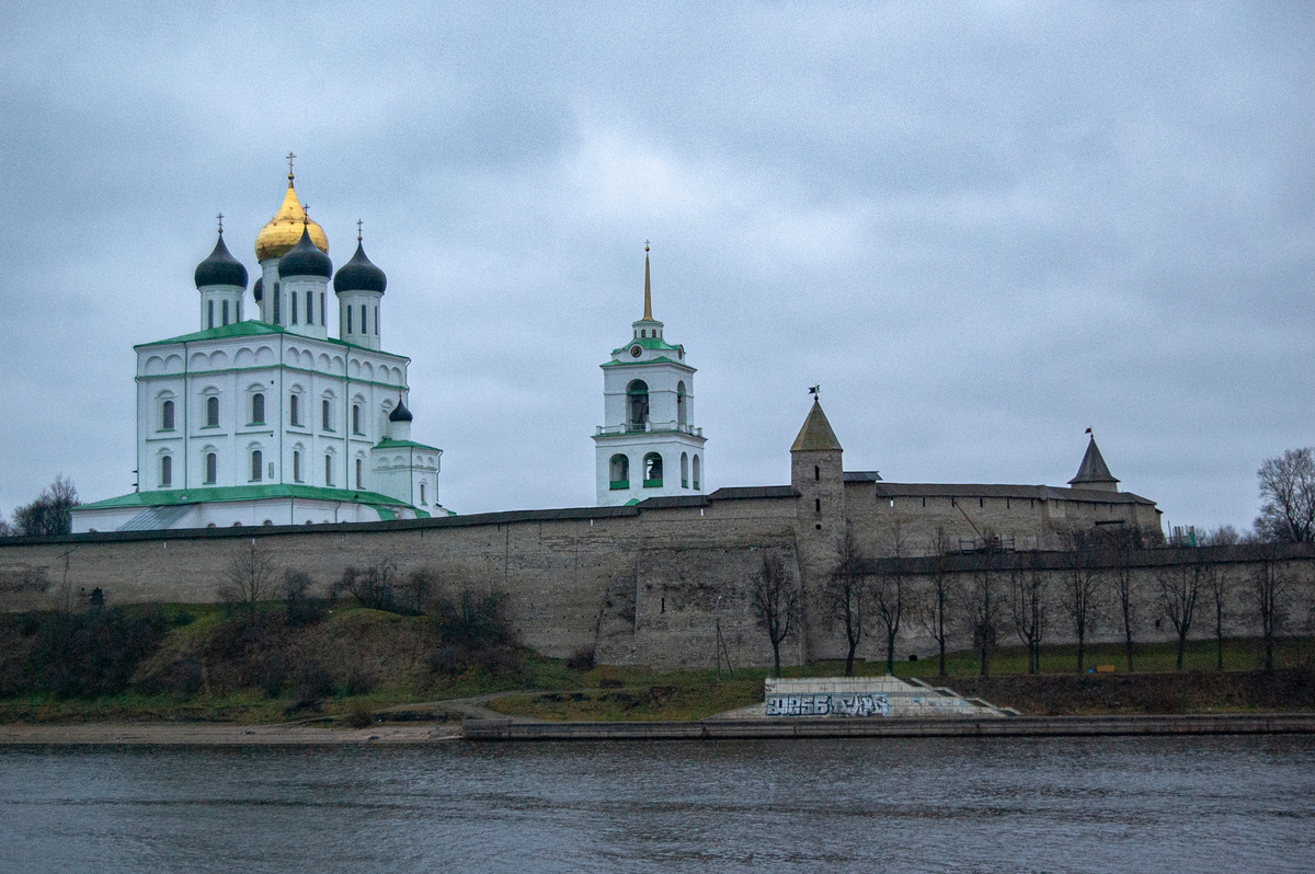 В детстве мне подарили фотоальбом "Земля Псковская". Большой альбомный формат, черно-белые фотографии. Так для меня открылся мир Северной Руси. Именно черно-белое изображение каменной кладки, деревянных изгородей, осенней травы - визуальный минимализм и максимальная выразительность. И вот по прошествии многих лет мне захотелось пофотографировать серую каменную кладку на фоне снега. И я с супругой отправился в Псков в начале декабря. Но снега не было ни крошки! Пришлось довольствоваться зеленой травой.
