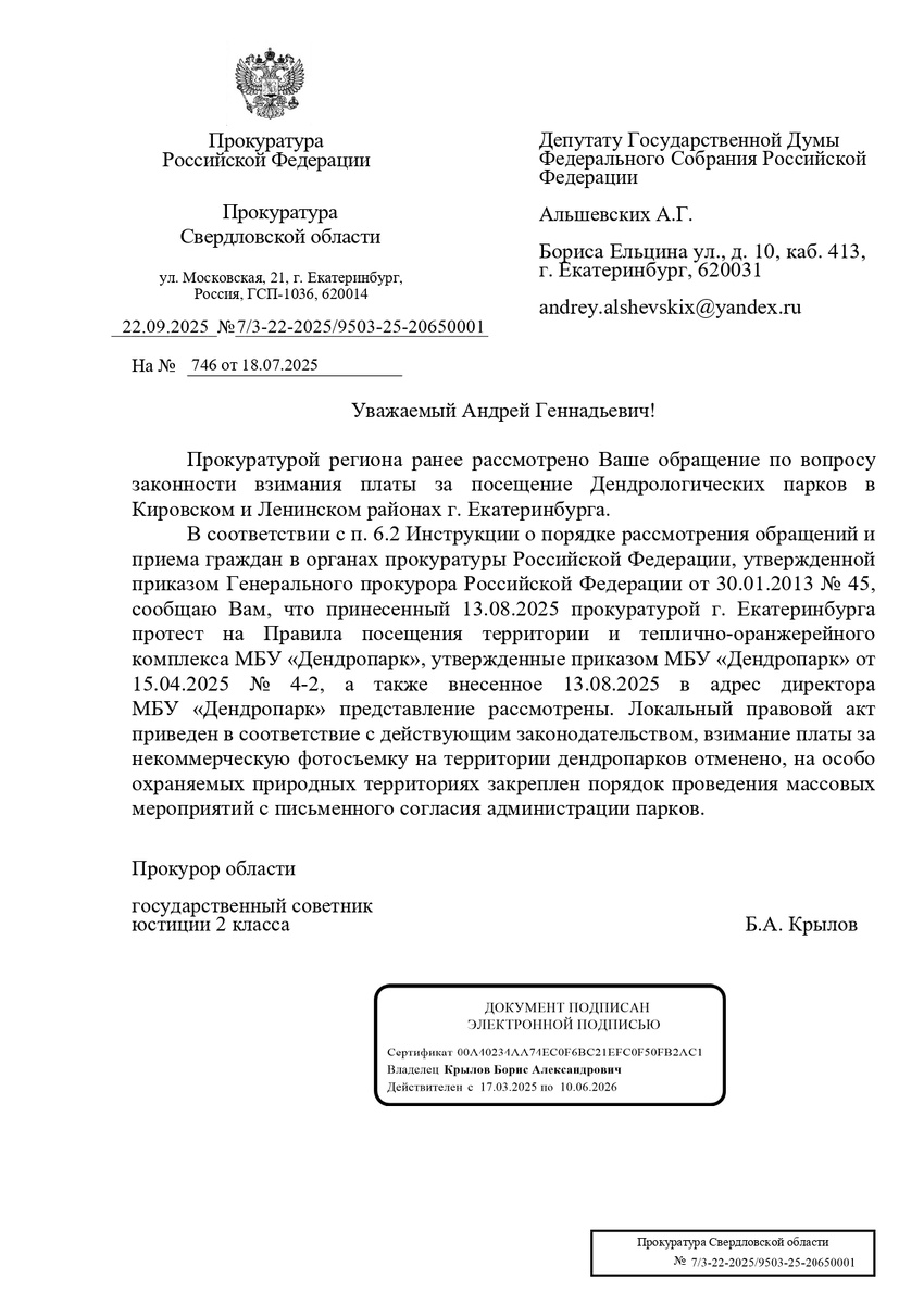 Прокуратура сообщила, что руководство Дендрария исправилось