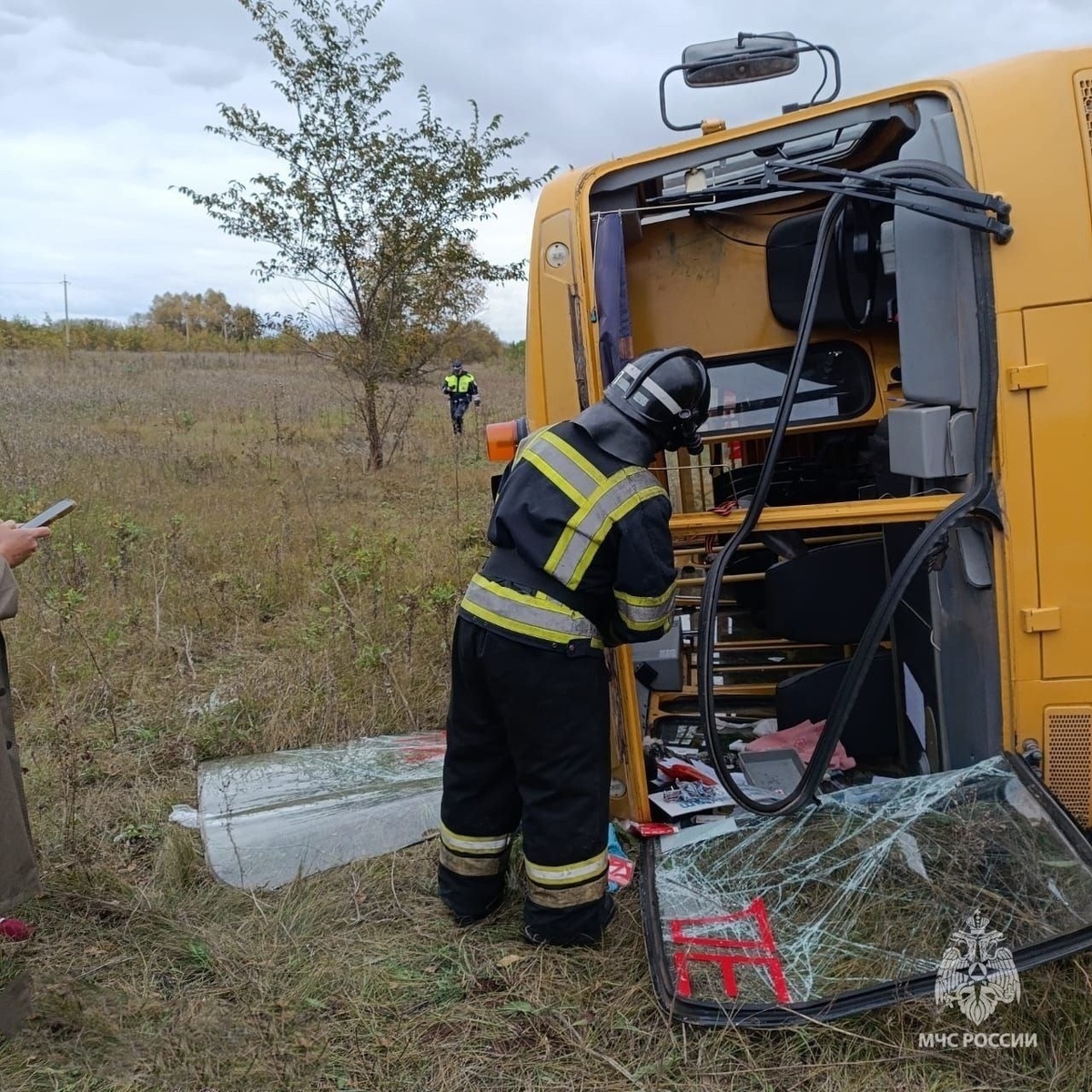 В Башкирии школьный автобус вылетел в кювет и перевернулся.