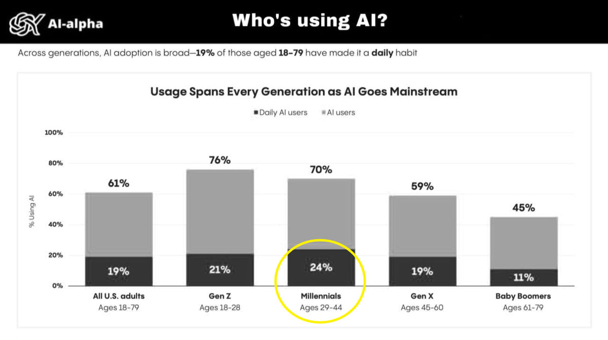 Исследование AIalpha показало удивительный факт: старшее поколение (55+) активно осваивает ИИ, составляя 33% пользователей. За месяц их число выросло на 5%! Они используют технологию для заработка и создания контента. Зумеры же рассматривают ИИ как универсального помощника, а старшее поколение — как продвинутую поисковую систему. Эти различия влияют на финансовые возможности каждого поколения.