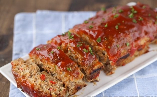 Ингредиенты: - 800 г смешанного мясного фарша (400 г из свиного окорока, 200 г из говяжей вырезки, 200 г из свиной корейки) - 1 луковица - 1 чашка нарезанного мелкими кубиками белого хлеба - 1 ч. л. соли - на кончике ножа белого перца - 1 яйцо - 1 чашка томатной пасты - 1 ст. л. растительного масла - 2 ломтика ананаса - 1 ст. л. сливочного масла Приготовление: Духовку разогреть до 180°C. Мясной фарш положить в глубокую миску. Лук очистить, покрошить и посыпать мясной фарш. Насыпать на фарш кубики хлеба, соль и перец. Яйцо взболтать. Смешать фарш со всеми добавками, с яйцом и таким количеством томатной пасты, чтобы получилась плотная, но эластичная масса. Сформировать мясной хлеб растительным маслом и запекать ы духовке на втором уровне снизу в течение 1-1,5 часа. Ломтики ананаса осушить и разрезать поперек пополам. За 20 минут до истечения этого срока уложить ломтики ананаса на мясной хлеб. Разложить по ананасу кусочки сливочного масла и продолжить запекать, пока ломтики ананаса не под