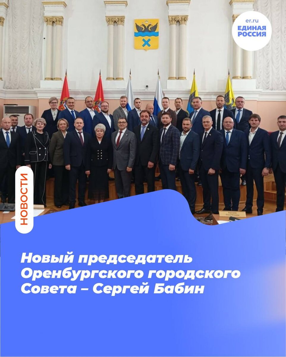✅Новый председатель Оренбургского городского Совета – Сергей Бабин. 🔹Он же возглавил фракцию «Единая Россия». 🔹Накануне состоялось первое заседание депутатского корпуса нового созыва. 🔹Ранее Президиум Регионального отделения «Единой России» определил кандидатуру Сергея Бабина на должность председателя Горсовета и руководителя партийной фракции. Это решение получило согласование в Президиуме Генерального совета. А сегодня вновь избранные депутаты путем тайного голосования избрали его спикером. 🔹После объявления результатов Сергей Бабин сказал слова благодарности предыдущему председателю Ольге Березневой, которая продолжит работу и в этом созыве. Также он сказал коллегам слова благодарности за поддержку, и выразил уверенность в дальнейшей продуктивной и плодотворной деятельности. 💬Горсовет серьезно обновился, теперь у нас шесть партий. Пришли люди разных профессий: учителя, врачи, бизнесмены, аграрии, участники СВО. Думаю, что никаких вопросов по легитимности быть не может. Обе