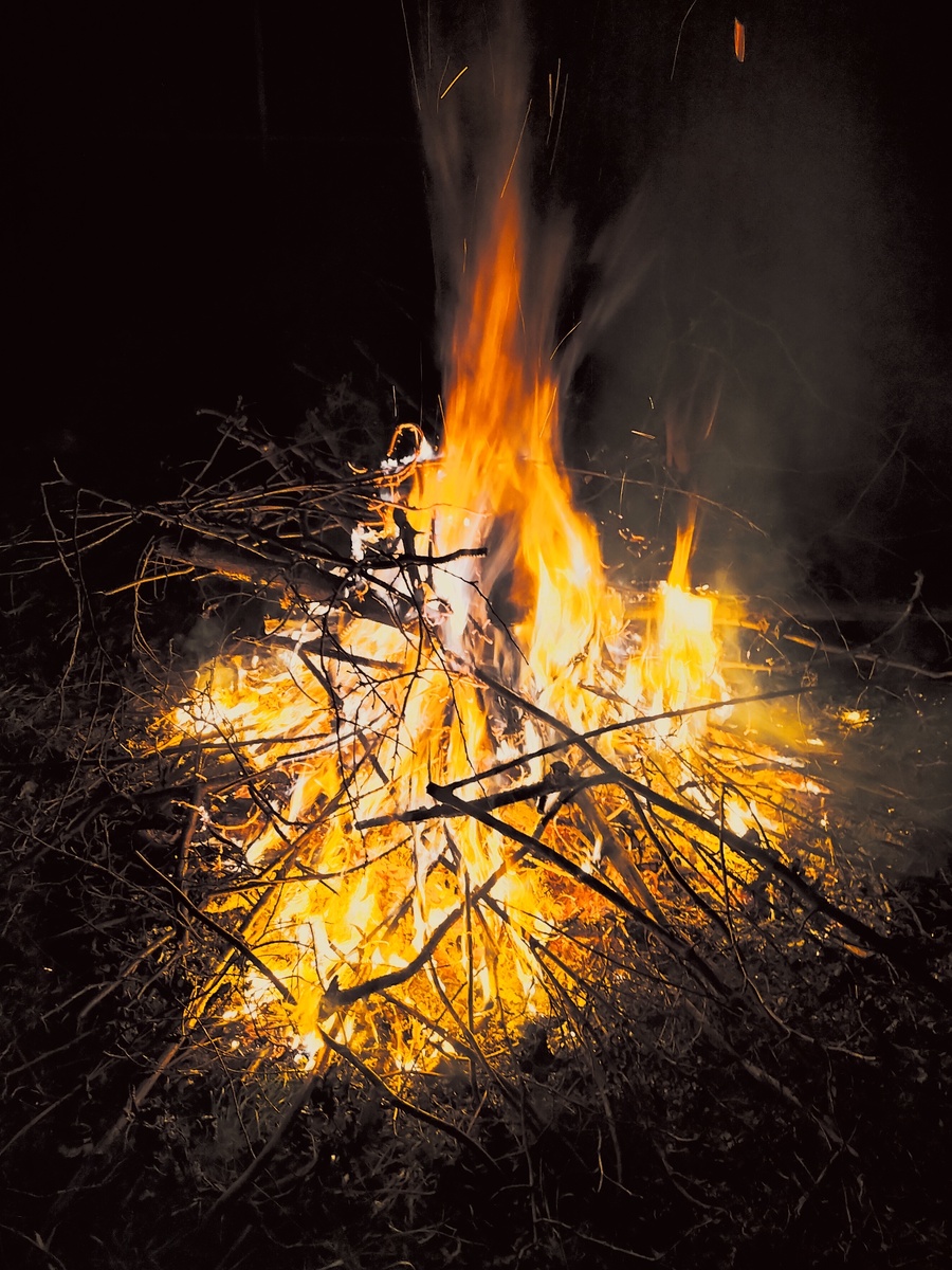 Костёр горит, куча крупной картошки. Запекать в углях картошку на 30 человек? Дык углей для этого должно быть очень много. Да и сгорит половина. Но мы же студенты Бауманки были, и инженерные мозги нам за время учебы хорошо прокачали. Да и в походах я бывал очень много раз.