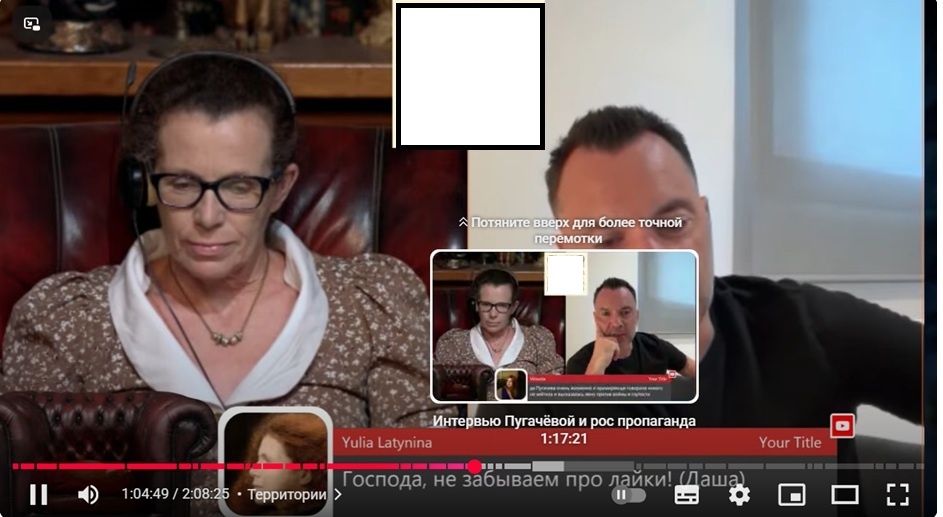 Заочно арестованный в РФ Люся Арестович ( по ч. 2 ст. 205.2 УК РФ «публичные призывы к терроризму» и п. «д» ч. 2 ст. 207.3 УК РФ «публичное распространение заведомо ложной информации о вооруженных силах РФ») вчера на эфире у иноагентки Латыниной выдал сокровенное обсуждая реакцию в России на интервью ПОКА ЕЩЁ не иноагентки Пугачёвой. Вкратце, длинный пассаж Люси о жене иноаганта Галкина сводился к следующим тезисам, цитирую: Это был апофигей всего ранее Люсей сказанного в других интервью кому не попадя. Почему так произошло? По очень простой причине - не смотря на все старания, Люсю не взяли, даже символически, на борт российского начальства - ведь никому более заливать про "братский тройственный народ" на постсоветском пространстве уже невозможно. Такие дурачки остались только в Москве. Хотя, конечно, могли взять (ведь многих уже взяли, достаточно ТВ посмотреть), но уж слишком откровенно Люся последние полгода заявлял, что Видимо, п.4 и достал кого надо. Ведь, как спел по другому по