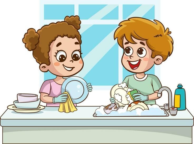 - Итак,посуда.Начиная с 2-3лет,каждый моет свою тарелку и ложку/вилку сам(пусть плохо,я потом перемою лучше)При этом у нас есть "посудомойка",но мы ей пользуемся обычно,если вся семья собирается на праздники и посуды много,ну или я ей пользуюсь,после большой "готовки".А так приучаю,чтобы в раковину посуду не ставили,а мыли сразу.А учить как,да легко,заинтересовать просто,показать,вместе это сделать,особенно с малышами.Потом,во взрослой жизни,они,как по "шаблону" на "автомате",посуду моют сразу,а не складируют в раковину,откладывая мытьё на потом.Полезный ведь навык?А то,приедет мама к сынульке-студенту в гости и будет там,отмывать кучу посуды засохшей,тратя кучу времени и сил.