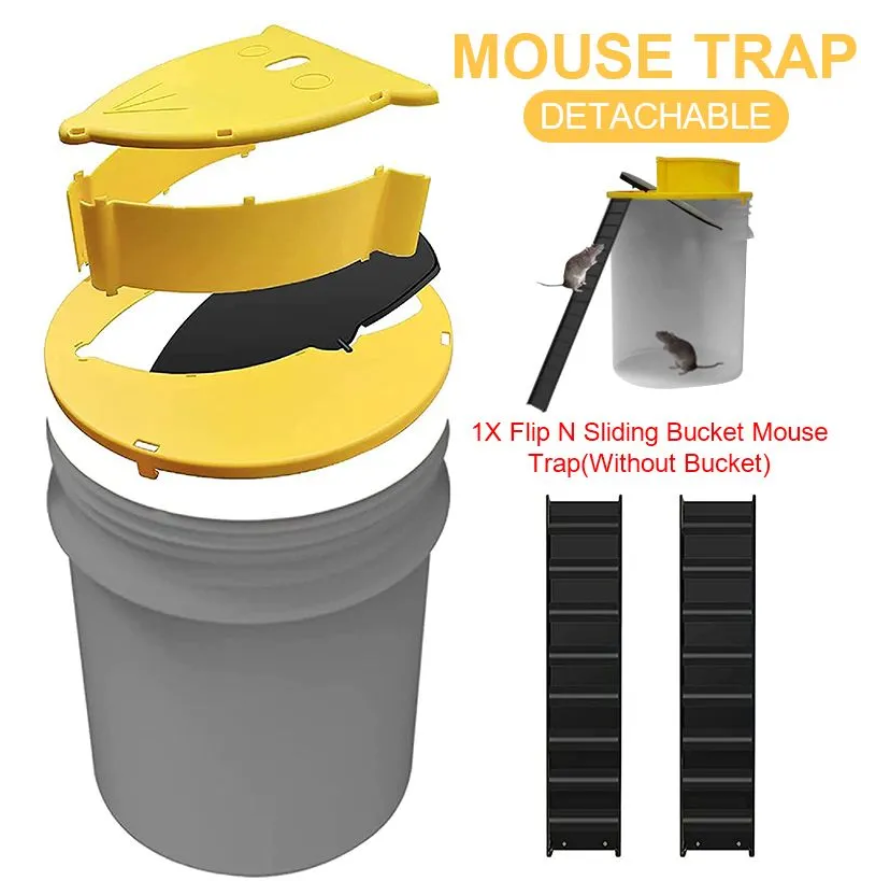 В этом году, благодаря «многомудрым» соседям мышей очень много. С похолоданием грызуны с соседских заброшенных (заросших бурьяном) участков начинают путешествие. Итак, что показало полную неэффективность – крашенные зерна (зеленые и красные) съедались под чистую. Ловушки пружинные, да, частично спасают, но по факту, это каждый раз заряжай, при необходимости добавляй приманку. Клеевые ловушки, по факту почти одноразовые – клей высыхает, плюс пыль и прочее явно не улучшают липкое качество. Ну и вопрос как этот клей будет работать зимой. Да и ценник на это клеевое творчество тоже оставляет желать лучшего. Хочется так - поставил, и чтобы как в сказке, ловилось по многу и сразу. Особо не рассчитывал, что будет какой-то эффект. Цена вопроса – около 300 рублей (август 2025 г.) Первый экземпляр (желтого цвета) более качественный был установлен на ведро. Причем, изначально, нужно наждачкой убрать все наплывы на пластике, далее собрать конструкцию и смазать силиконовой смазкой шарниры. При сб