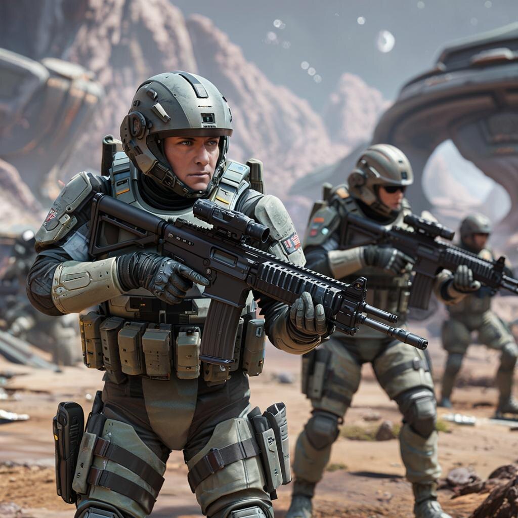 Глава 1 Космос был чернее самой глубокой ночи. Среди звезд мерцали далекие планеты, каждая со своей историей и тайнами. Но сейчас внимание было приковано к одному месту — планете Траксис IV, где разворачивалась самая масштабная операция русской космической разведки. Команда капитана Сергея Васильева состояла из лучших бойцов спецназа. Их миссия была проста и одновременно невероятно сложной: проникнуть на вражескую базу, уничтожить ключевые объекты и вернуться обратно живыми. Противником были инсектоиды — агрессивная раса насекомых, способная быстро адаптироваться и создавать мощные защитные поля. — Готовьтесь к высадке, ребята, — сказал Васильев, проверяя оборудование. — Помните, наша задача — тихо и незаметно сделать свою работу. Космический корабль мягко опустился на поверхность планеты. Команда вышла наружу, вооружившись новейшими плазменными винтовками и маскировочными костюмами. Они двигались осторожно, стараясь избегать обнаружения. Глава 2 Через несколько часов команда дос