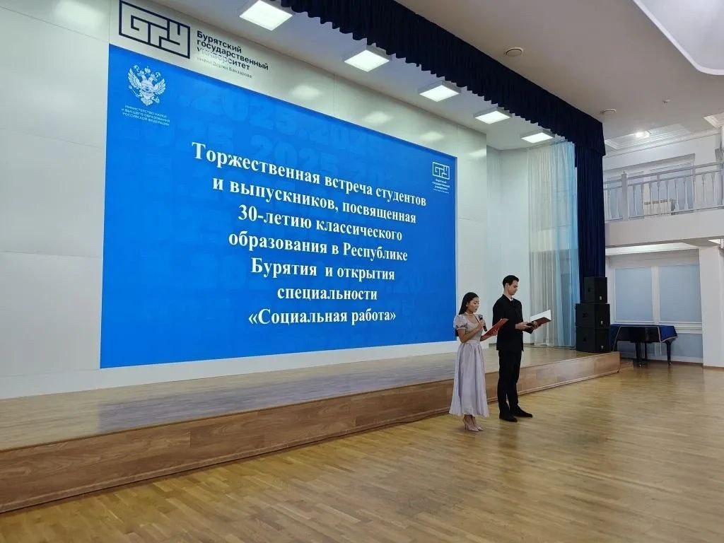 Алексей Бадонов: 26 сентября 2025 года прошла торжественная встреча студентов и выпускников, посвящённая 30-летию классического образования в Республике Бурятия и открытия специальности «Социальная работа». Встреча собрала всех студентов очного и заочного отделения по направлению «Социальная работа», многих выпускников и коллег кафедры теории социальной работы Бурятского государственного университета имени Доржи Банзарова. Это был вечер тёплых воспоминаний и мудрых напутствий. Наши студенты узнали многое о наших выпускниках и друзьях кафедры. Специальность «Социальная работа» является одной из самых универсальных, она учит работать с людьми разных возрастов и положения, взаимодействовать с коллегами из смежных профессий. Примером для этого являются наши дорогие выпускники — наша гордость! Судьба их разбросала по всей стране — от Камчатки до Калининграда! Некоторые живут и трудятся в других странах! Но большинство из них являются патриотами своей родины — они живут, работают и растят