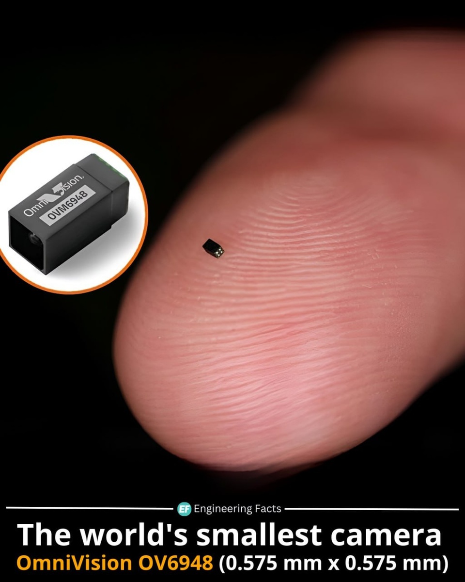 OmniVision OV6948 На сайте они пишут, что стали обладателями премии Гиннесса, но на сайте самой премии страница пока в 404. Но не суть! Сенсор, язык не поворачивается это назвать камерой) OV6948 признан самым маленьким коммерчески доступным сенсором изображения в мире — всего 0,575 мм × 0,575 мм × 0,232 мм! Изначально его создавали для медицинских эндоскопов и катетеров с малым диаметром, но область применения оказалась куда шире (и боюсь будет расширяться): стоматология, ветеринария, IoT, носимые устройства, промышленность и даже криминалистика. 📝 Ключевые характеристики: - формат сенсора 1/36 дюйма (не сказали каких именно дюймов, но один фиг - маленький); - разрешение 200×200 пикселей при 30 кадрах/с (то есть они ещё и умудрились сохранить пиксель достаточно большого размера ~ 2,9мкм); - высокая чувствительность (1000 mV/lux-sec - это значит что при освещении в 1 люкс в течение 1 секунды сенсор выдаёт сигнал напряжением 1000 милливольт), уверенная работа даже при низкой освещён