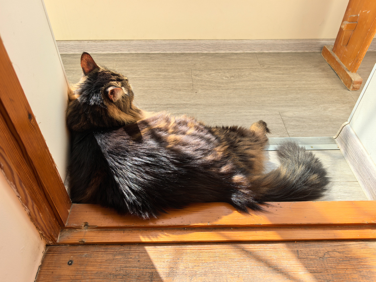 Всем привет! С вами Кузя Кусалочкин (он же царь Кузьма I). Сегодня я покажу, как летаю. Утро началось стандартно. Только в этот раз я не будил хозяйку. А всё было наоборот. Она встала и ждала, когда я прийду на кухню. На новые каналы я сейчас не подписываюсь. Дружить, забежать в гости времени нет. Потом я соизволил прийти и получил свой паштетик на царской тарелке. Поел и пошёл отдыхать. Потом решил, что надо бы на солнышке полежать. И улёгся на порожке: С погодой у нас сложнее стало. Похолодало, дует противный северный ветер. Решил переместиться на окошко и лежать, наблюдать: Ну а хозяйка решила рискнуть и пойти на море. Говорит, что вода холоднее стала, долго купаться не смогла, да и на пляже вообще не лежала из-за ветра. Вернулась хозяйка домой. Ничего интересного не принесла, кроме фильтров для воды. А я ходил выпрашивал что-нибудь интересное. В итоге хозяйка мне дала порцию паштетика. Дождей у нас больше не было, поэтому хозяйке пришлось идти поливать цветы. Хотя бы раз в недел