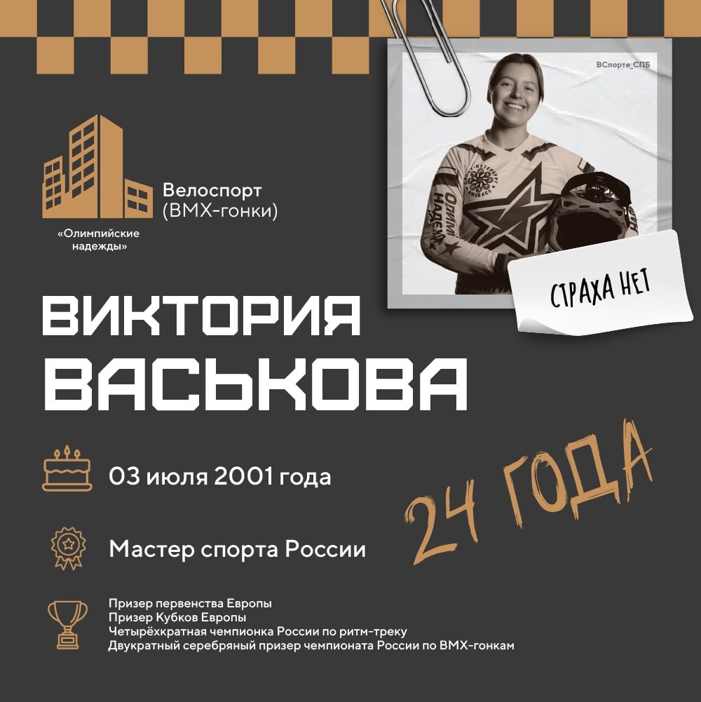 #ЛичноеДелоВСпорте 📓 🤩 Сегодня знакомимся со спортсменкой «Олимпийских надежд», которая добилась мощных результатов в BMX-гонках! 📖 Открываем личное дело Виктории Васьковой! 🙌Будь ВСпорте!