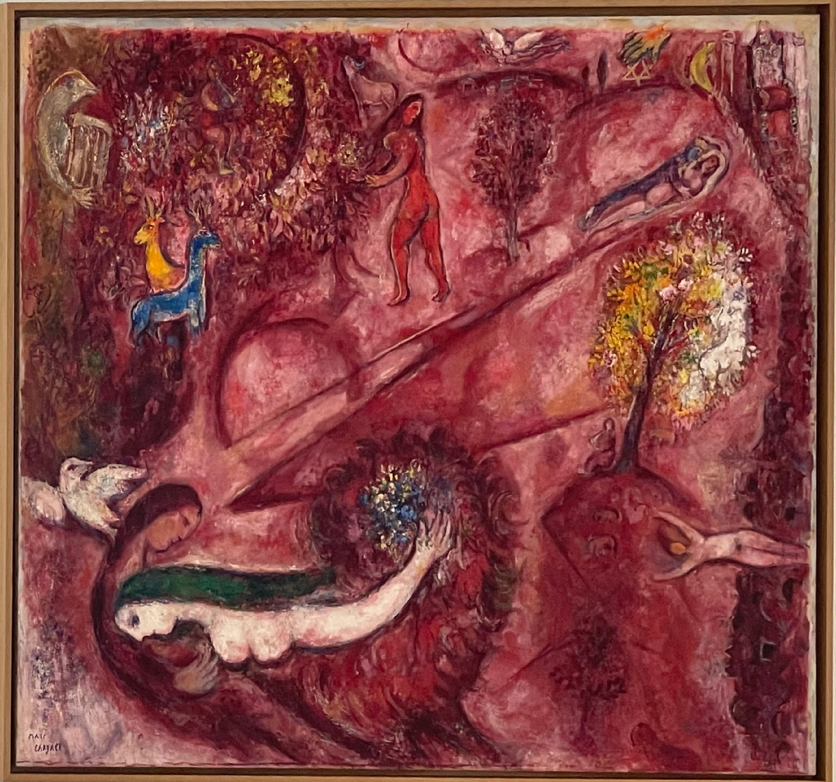 Марк Шагал, «Песнь Песней V», 1965–1966, масло на наклеенной бумаге, 150 × 226 см, дар Марка и Валентины Шагал, 1966, Национальный музей Марка Шагала, Ницца.