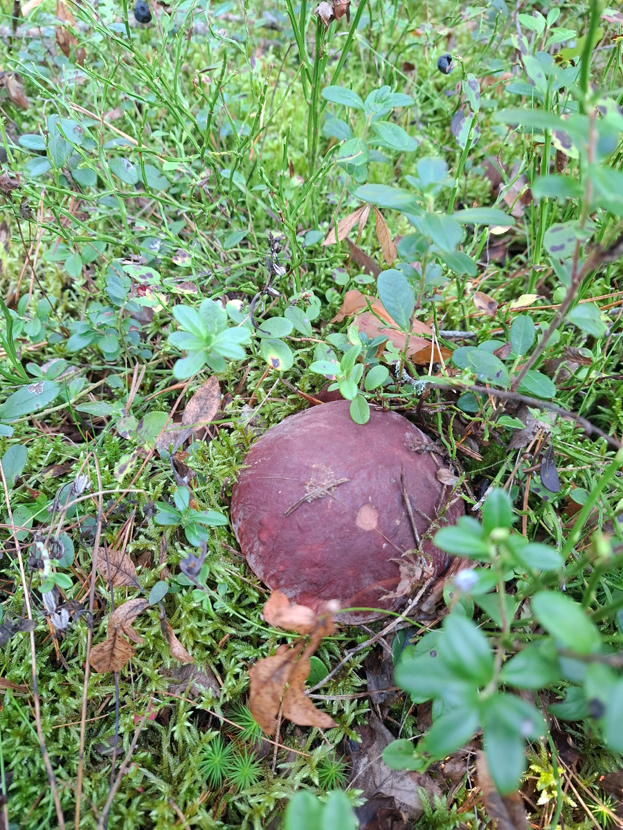 Иду дальше. Справа от меня, метрах в 100 идёт Димон. У него с грибами немного хуже чем у меня, сказал что ни одного молодого не нашёл. Только переростки. Вот и я нахожу поляну боровиков, но все большие. Проверяю самого мелкого из них, оказывается червивым. Остальные даже срывать не стал.