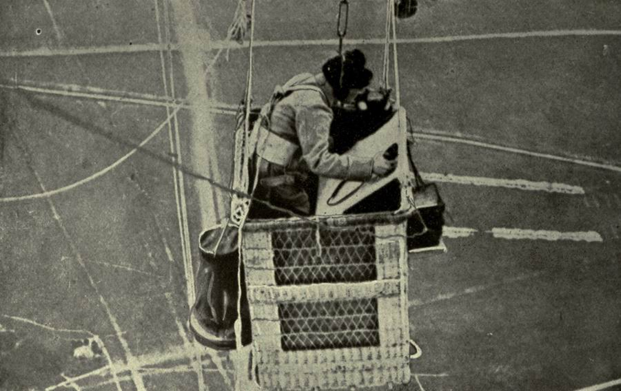 своих снарядов, после того, как принял с земли сообщение «выстрел». Вдали взметнулись фонтаны разрывов около самой вражеской батареи, и в ту же секунду вспыхнул подожженный аэростат. Тогда, перекинув одну ногу через край гондолы, корректировщик передал артиллеристам последнюю команду: