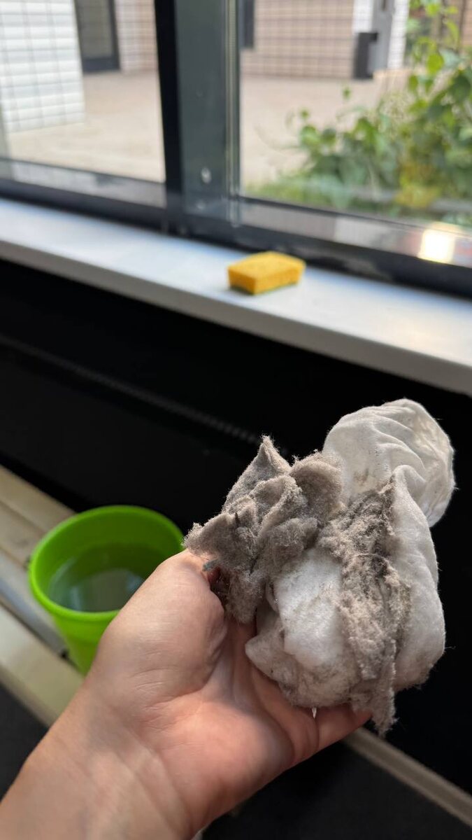 Смотрите сколько пыли на верхней перекладине, будто из пылесоса достали!