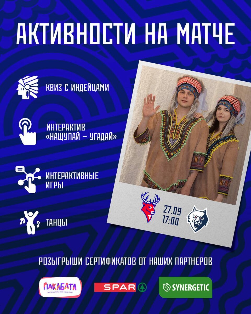 🏒 Возвращаемся домой! На матче с «Нефтехимиком» вас ждёт масса развлечений: ✨ Квиз с индейцами ✨ Интерактив «Нащупай — угадай» ✨ Игры и танцы ✨ Розыгрыши сертификатов от SPAR, SYNERGETIC и ПАКАБАТА Приходите пораньше и зарядитесь атмосферой праздника! 🔥
