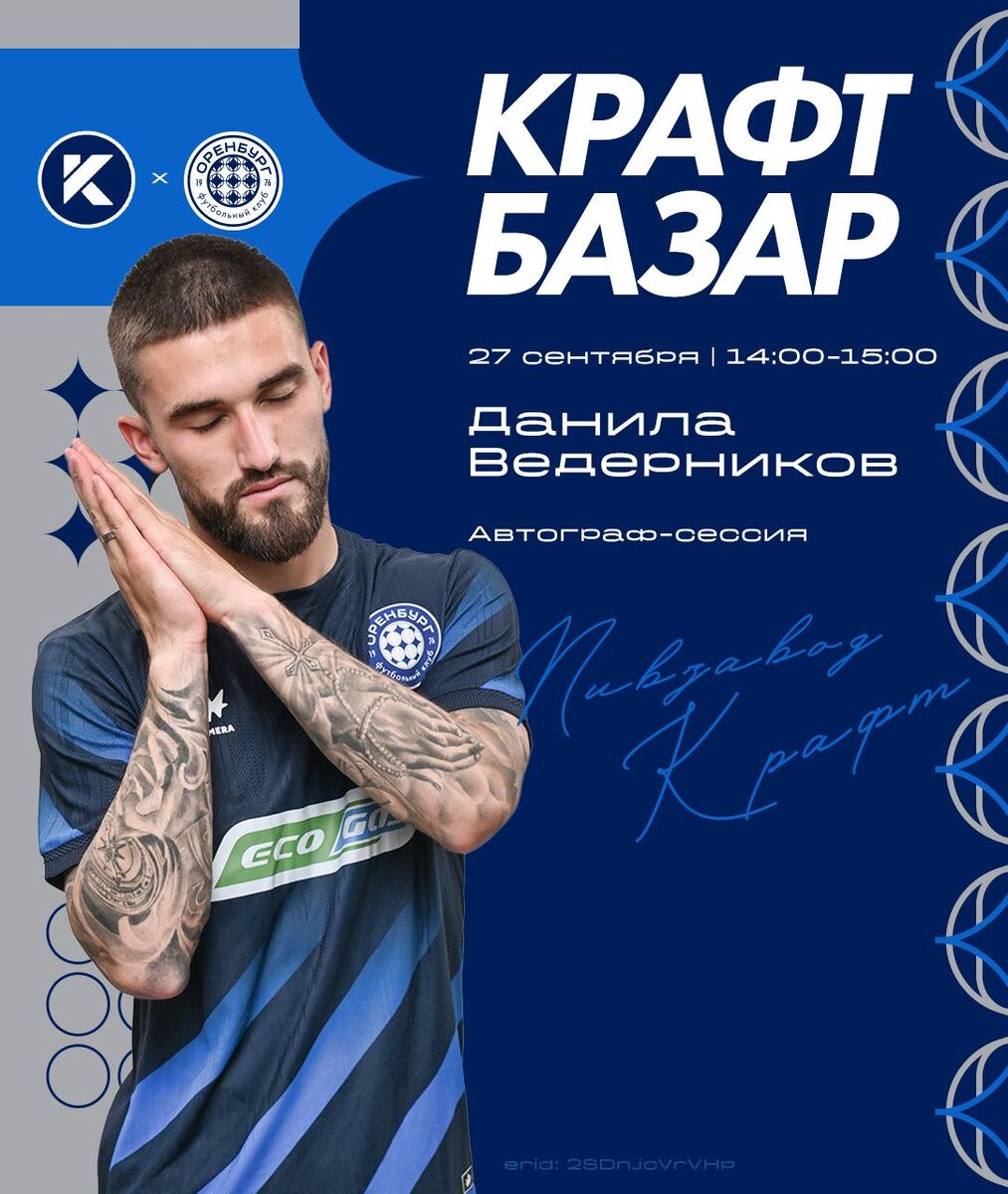 МАСШТАБНЫЙ ФЕСТИВАЛЬ «КРАФТ БАЗАР» Сине-белые, 27 и 28 сентября на поляне пивзавода «КРАФТ» (Тихая 8/2) пройдет первый масштабный фестиваль гастрономии и музыки. В программе: - Автограф-сессия Данилы Ведерникова - Дегустации крафтовых напитков от «КРАФТ» и других производителей - Музыка и шоу на открытом воздухе - Гастростанции с закусками и блюдами - Активности, конкурсы и призы - Площадка с крафтовыми играми и активностями от нашего клуба - Футбольное родео на зелёном газоне Билеты доступны по ссылке 👉 events.nethouse.ru/form/136730 Поздравим нашего партнёра с 10-летием и отлично проведем время!