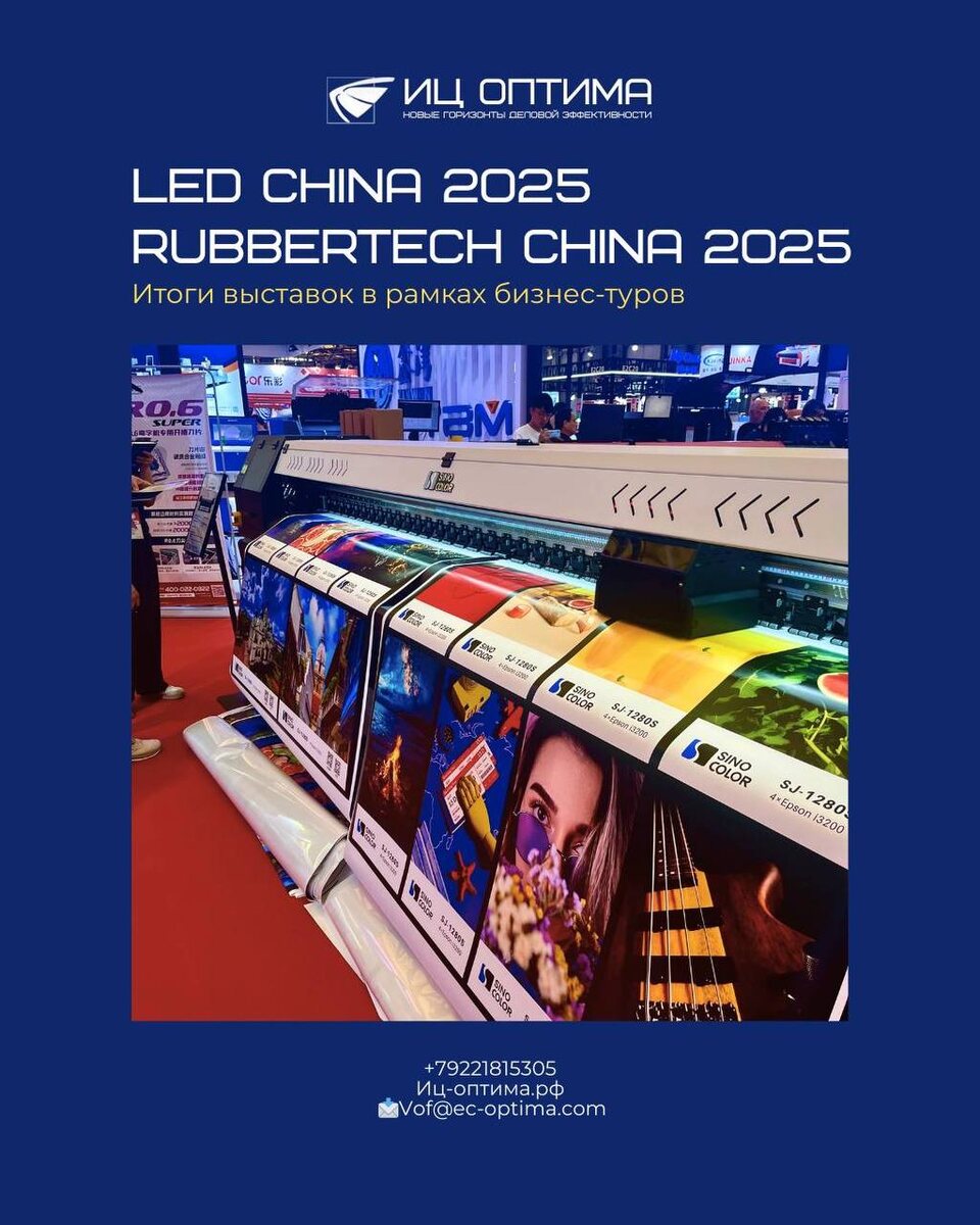 ИТОГИ Led China 2025 и RubberTech China 2025 — кратко и по делу 📋 В сентябре ИЦ Оптима организовал бизнес-туры на крупные выставки в Китай (Шанхай): Led China 2025 и RubberTech China 2025. На выставках были изучены тренды, варианты сотрудничества с новыми поставщиками и решения для промышленного и торгового оборудования. По наблюдениям, главные тезисы на выставках были следующими: ➖ Led China 2025: рост интереса к Mini‑LED и Micro‑LED, энергоэффективным драйверам, smart‑управлению освещением и интеграции светодиодов в промышленные и интерьерные решения. Акцент на качестве света, управляемости и снижении потребления энергии. ➖ RubberTech China 2025: фокус на устойчивых каучуковых смесях, технологиях переработки, автоматизации производства и системах контроля качества. Активно демонстрировались решения по точному литью, экструзии и тестированию материалов. 🔹 ИЦ ОПТИМА организует бизнес‑туры и предоставляет сопровождение на международные выставки, помогает наладить контакты с постав