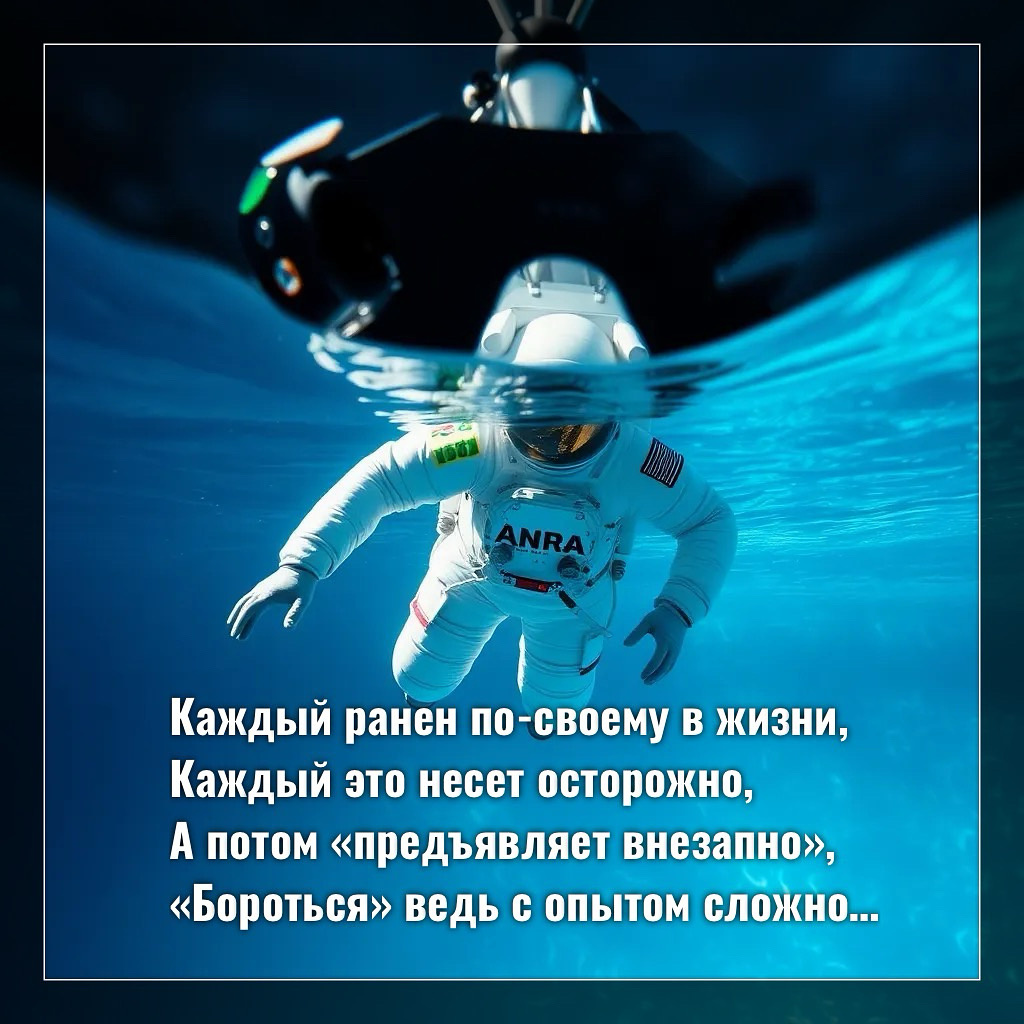 Каждый ранен по-своему в жизни, Каждый это несет осторожно, А потом «предъявляет внезапно», «Бороться» ведь с опытом сложно, И то, что не долечили, Будет всё время болеть, Людям не нужно страдать, Им важно в себя посмотреть, «Что беспокоит, зачем? Как мне весь груз этот сбросить? Что я могу изменить?» Тогда перестанет морозить Сердце итак очень хрупкое, С трещинами по краям, Каждый себя защищает, Но битву придумал сам. И борется точно не с миром, «Хлам» должен вымести свой, Чтоб не потухать, а светить, В гармонии быть с собой, Стать благодарным за всё, Чтоб не было больше вражды, Чтобы Душа избавилась, От беспросветной тьмы.