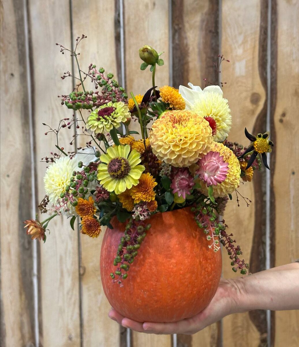 Нужно всего лишь заменить привычную корзинку или коробку на тыкву — и у вас получится композиция, мимо которой никто не пройдёт. Это тренд сезона, это про атмосферу и про продажи. Клиенты влюбляются с первого взгляда и хотят унести такую красоту с собой 🍁