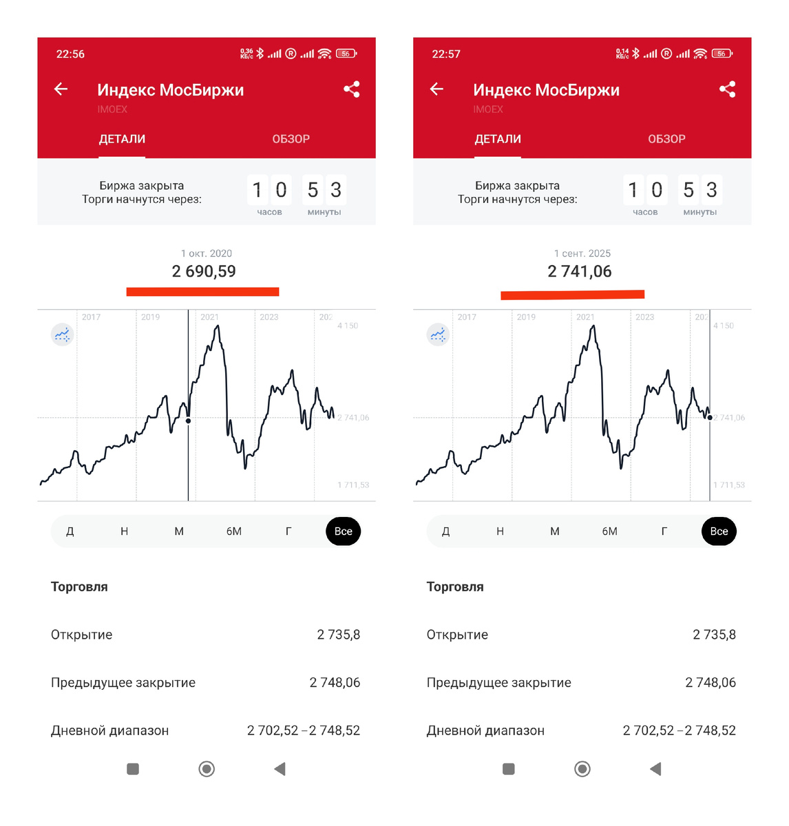 Пришел я на биржу осенью, в 2020 году, прошло 5 лет а индекс Мосбиржи снова на тех же отметках) На этом можно завершить пост😺 Морально сложно быть тем самым долгосрочным инвестором, который годами ежемесячно скупает активы, надеясь на их рост, и понимает, что спустя пять лет рост обнулился (ну, правда это не впервые за 5 лет)). Чуть проще тем, кто вкладывался в дивидендную стратегию или портфельное инвестирование, у них индекс полной доходности будет выглядеть получше, да и металлы неплохо подросли. За это время я уже успел несколько раз переосмыслить свой подход к инвестициям, и по итогу понимаю, что наиболее верный путь - проявлять гибкость, в зависимости от ситуации на рынке и в жизни, а не тупо повторять инструкции из умных книжек или очередных гуру и бесполезно пытаться получить такой же результат, имея совершенно иные параметры ситуации и исходные данные. По сути главное приумножить капитал, а не выполнить 100 шагов к успеху из книги. Так и хочется сказать, что стратегия -