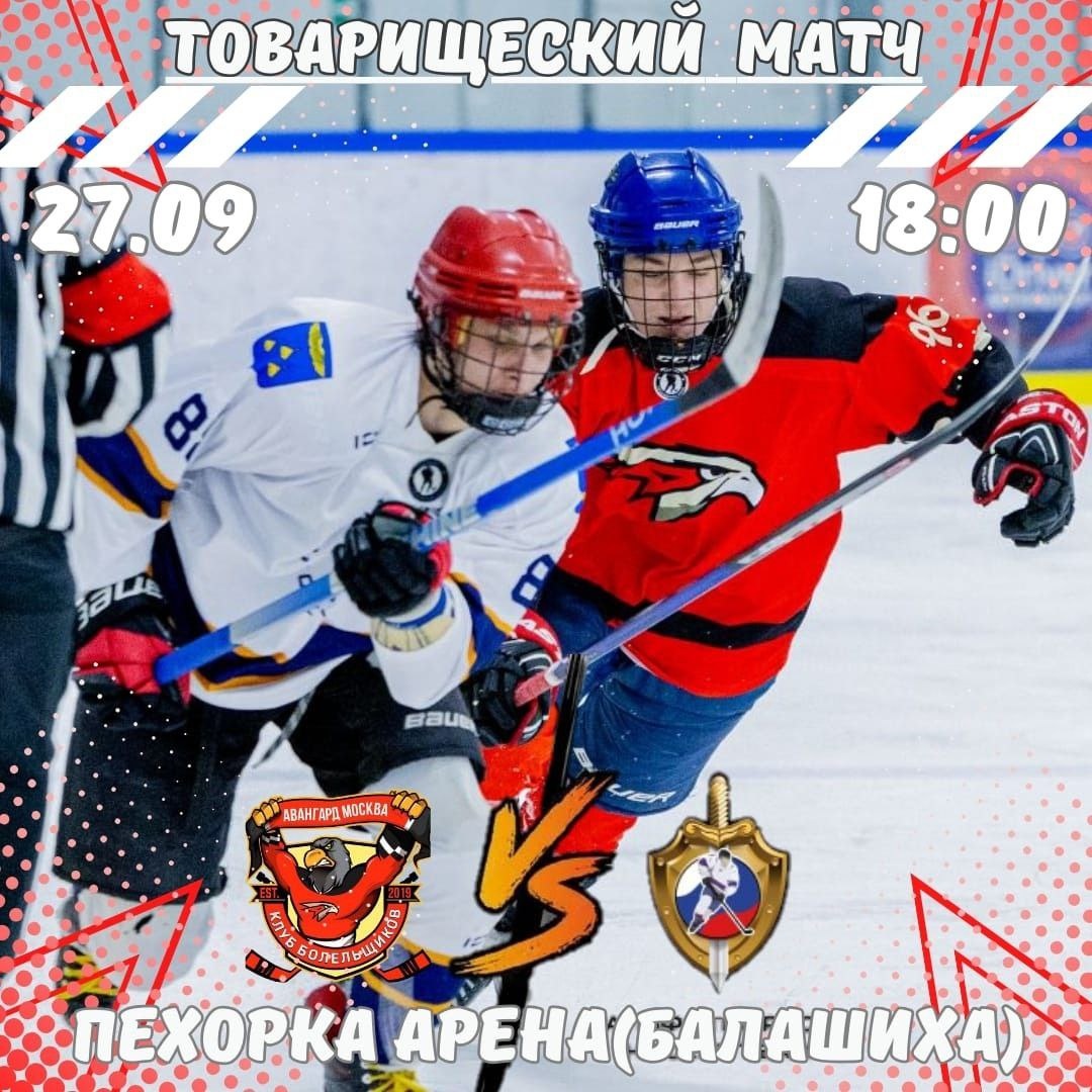 Сегодня в 18:00 на "Пехорка Арене" состоится очередной товарищеский матч! Мы сразимся с нашим знакомым соперником — хоккейным клубом "Альфа Патриот"! Приходите поддержать нашу команду в этом захватывающем поединке! 💪 Ваша поддержка очень важна для нас! Не пропустите шанс увидеть яркую игру и зарядиться энергией хоккея🏒! #КБАВАНГАРД #АльфаПатриот #Хоккей #ТоварищескийМатч #ПехоркаАрена #ПоддержиКоманду