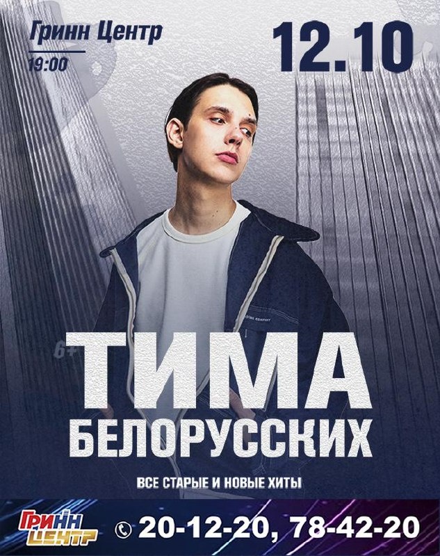 🎫 – Тима Белорусских: концерт в Орле 🎤 – Тима Белорусских 📍 – «Гринн Центр», Орёл, Кромское ш. д. 4 🗓 – 12 октября 💵 – от 1 800 руб. 🔗 – билеты (6+) #концерт #тимабелорусских #гриннцентр #орел 👉 Список концертов: сентябрь • октябрь • ноябрь • декабрь @mainstreamusic