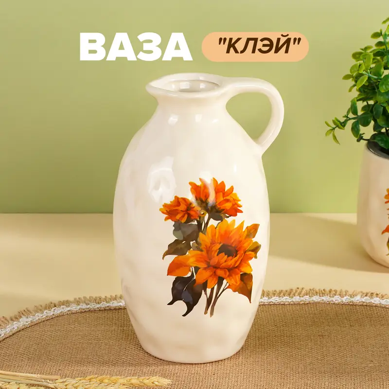Ваза-кувшин с изящным рисунком станет украшением любого интерьера. Лаконичная форма и мягкий кремовый цвет создают атмосферу уюта.