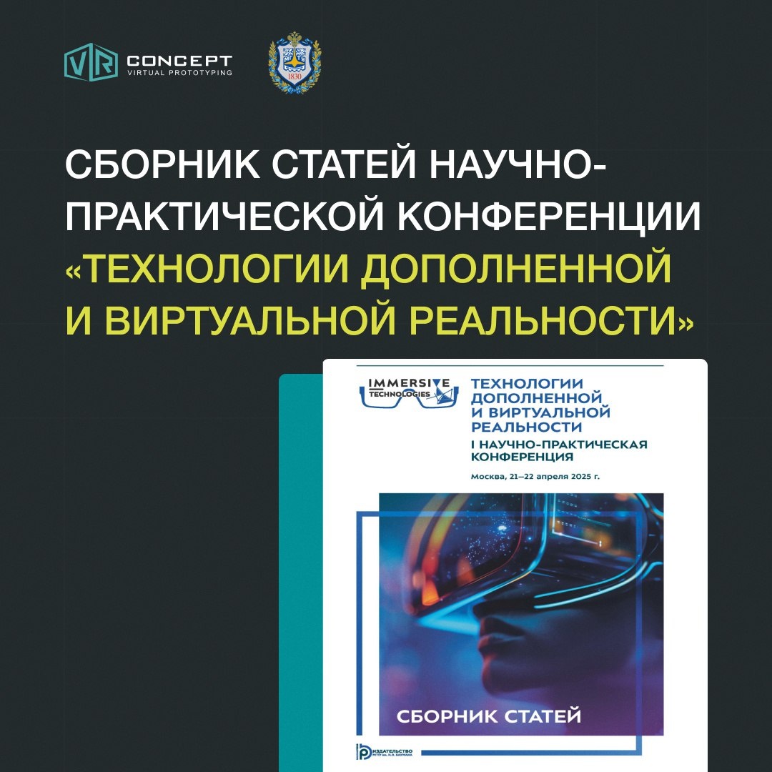 🚀 Вышел сборник статей I научно-практической конференции «Технологии дополненной и виртуальной реальности» (МГТУ им. Н.Э. Баумана, апрель 2025). В сборнике опубликована наша статья, а также представлены работы других участников конференции, где описаны проекты и исследования с применением VR Concept. Теперь весь сборник доступен онлайн 👉 ссылка на сайт издательства https://press.bmstu.ru/catalog/item/8490/ Позже статьи появятся и в базе РИНЦ (e-library).