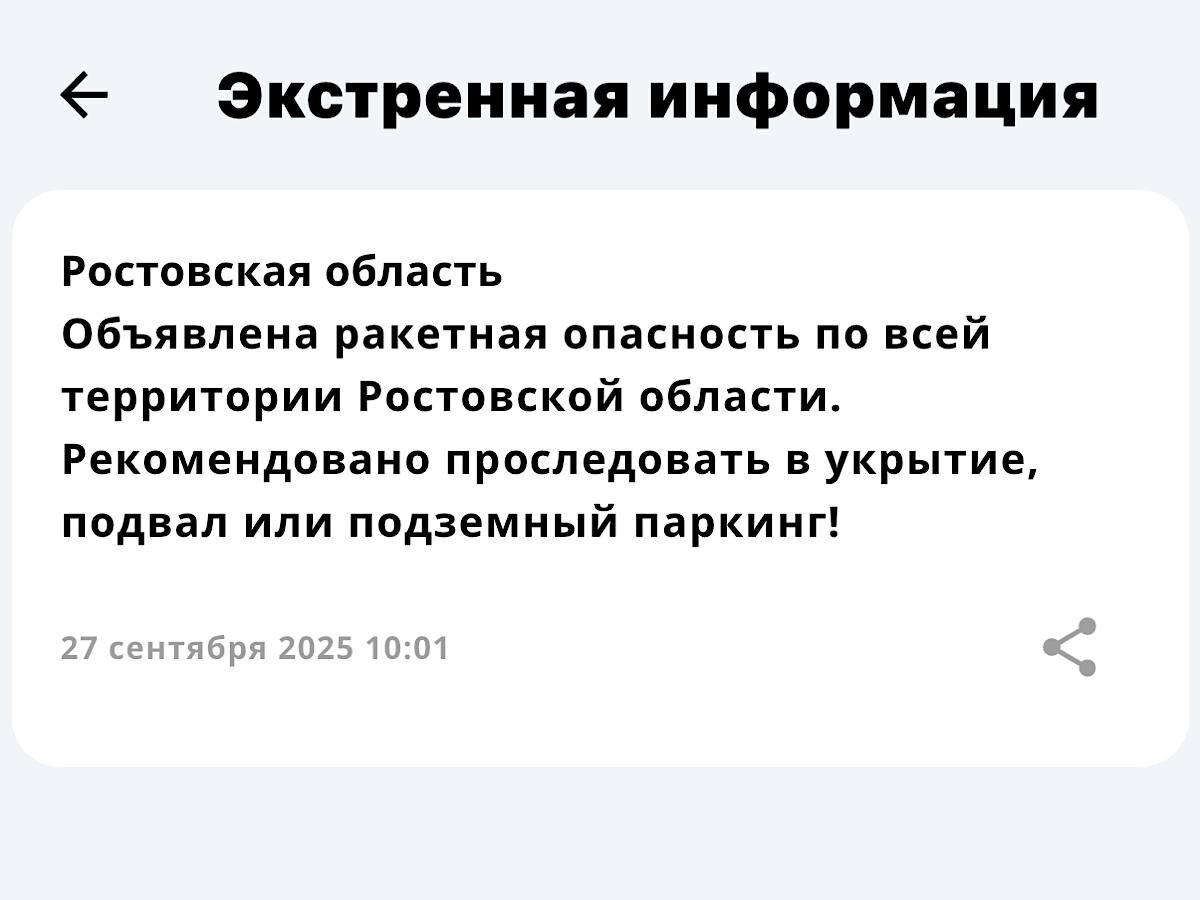 ❗️В Ростовской области объявлена ракетная опасность ‼️
