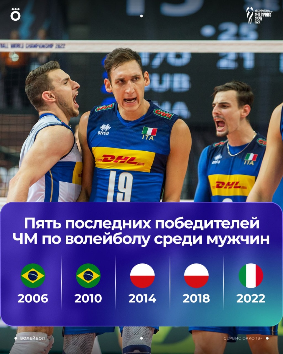 🏐 Пять последних победителей ЧМ по волейболу. Завтра узнаем еще одного.