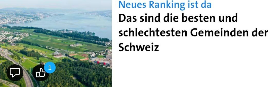 Самые лучшие и худшие сельсоветы Швейцарии Община Фрайнбах (кантон Швиц) заняла первое место в рейтинге общин журнала «Bilanz». В топ-100 в основном вошли сельские, как правило, налогово выгодные общины, тогда как крупные города оказались на последних позициях. За Фрайнбахом расположились общины Альтендорф (SZ) и Майенфельд (GR), занявшие 2-е и 3-е места. На 960-й, последней строчке рейтинга оказалась солотурнская община Мюмлисвиль-Рамисвиль. В исследование включили все общины с населением более 2000 человек, сообщил журнал в четверг. Для составления рейтинга было привлечено цюрихское консалтинговое агентство по вопросам недвижимости и локаций IAZI AG. К положительным критериям оценки «Bilanz» относит низкие налоги, хорошие школы, короткие расстояния «и прежде всего гармоничное сочетание качества жизни и перспектив». Именно это вывело на первое место «пристанище мультимиллионеров» с «рекордно низкой налоговой ставкой», говорится в публикации. На другом конце списка — Мюмлисвиль-Р