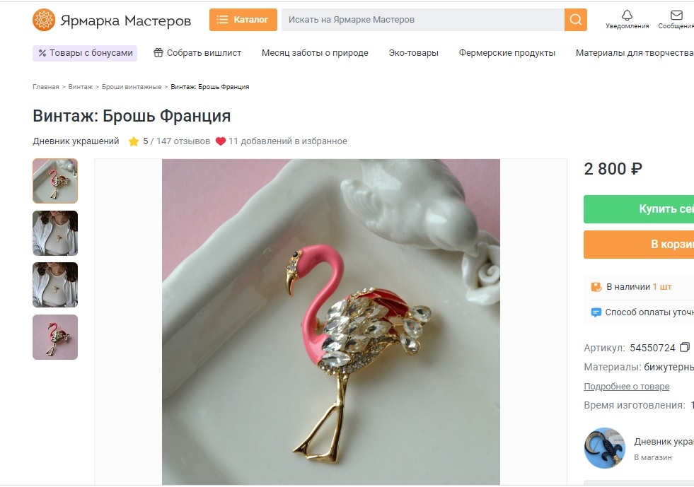 И вот эта же брошь продается на известной торговой площадке.