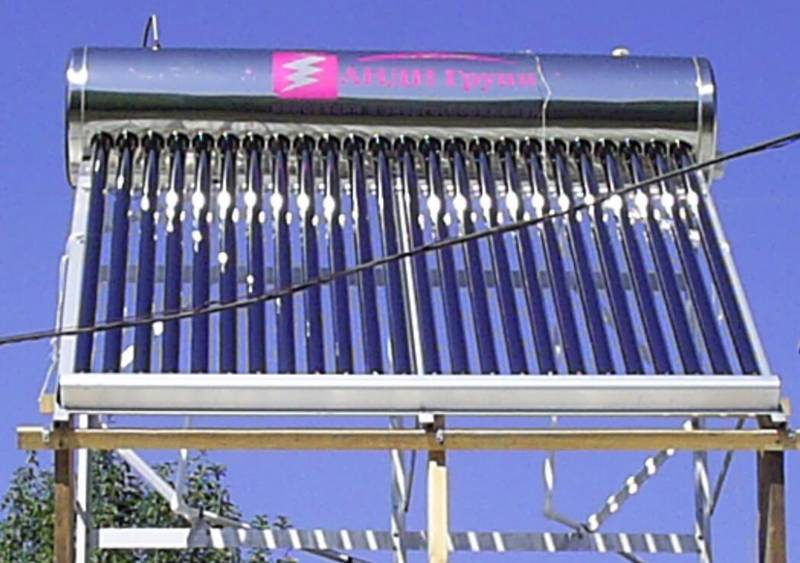 Владелец самодельного коллектора: "Простой солнечный коллектор из подручных материалов позволил обеспечить дачу теплой водой на шесть месяцев в году. Затраты на изготовление оказались в несколько раз ниже покупки готовой системы. Особенно радует, что для его работы не требуется электричество".