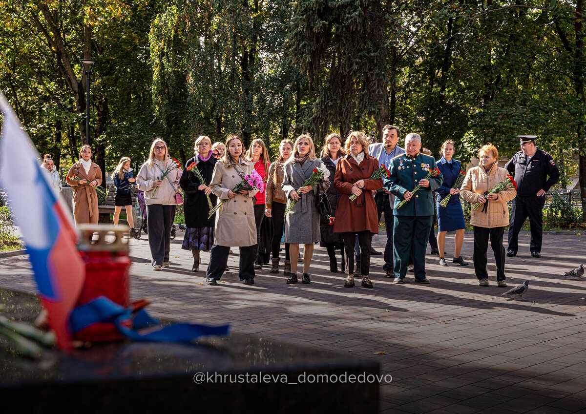 🌹Вместе с семьями участников СВО – сотрудниками наших детских садов, городским прокурором, руководителем местного отделения ассоциации ветеранов СВО и участником программы «Герои Подмосковья» возложили цветы к Мемориалу домодедовцам, погибшим в зоне специальной военной операции. Это был момент тишины и памяти. Мы всегда будем помнить наших земляков, отдавших жизнь за Родину, и поддерживать их семьи. 📱 Евгения Хрусталева | Глава Домодедово