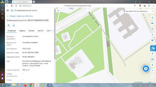 Название: Земельный участок, расположенный по адресу: Российская Федерация, Тамбовская область, городской округ город Тамбов, город Тамбов