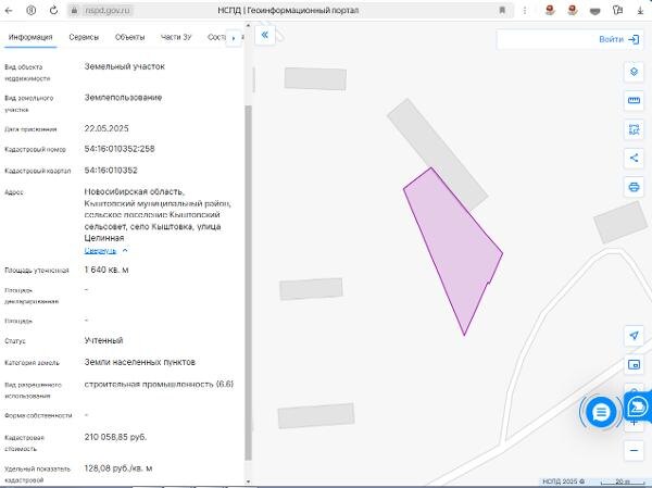 Название: Земельный участок из земель населенных пунктов, кадастровый номер: 54:16:010352:258, общей площадью 1640 кв.м., местоположение: Новосибирская область, Кыштовский муниципальный район, сельское поселение Кыштовский сельсовет, село Кыштовка, ул. Целинная Канал: Госземля Новосибирская область Область: обл Новосибирская Район: м.р-н Кыштовский Населенный пункт: с.п. Кыштовский сельсовет, с Кыштовка, ул Целинная Локация: Смотреть на карте ВРИ: - Кадастровый номер: 54:16:010352:258 Кадастровая стоимость: 210058.85 Вид сделки: Аренда Площадь: 1640 м² Начальная цена: 10200.00 руб. Дата завершения: 12.10.2025 Подробнее: ГИС ТОРГИ #госземля #земляотгосударства #земля #земельныйучасток #земельныеторги #торги #аукцион #арендаземли #аренда #новосибирскаяобласть